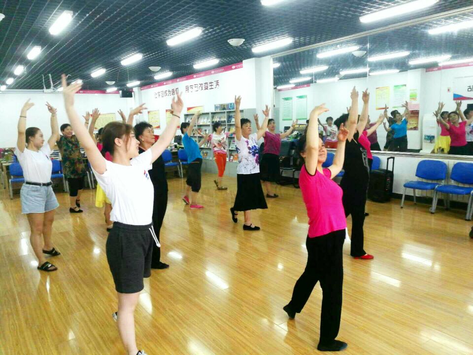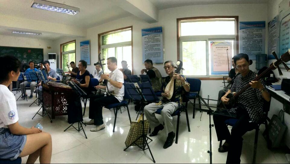 一大早,志愿者老师们就来到了槐荫区道德街新世界阳光花园舞蹈队,阿姨们非常热情地展示了他们成品的扇子舞蹈《美落子》,志愿者老师根据他们的扇子舞蹈向他们讲解了扇子舞蹈的风格,点出了这支舞蹈的要点、以及扇子的拿法、手腕和跨部的要求和正确姿势,对他们的每个动作进行了细致的指导。每个人都认真学习,课堂气氛十分活跃;同在道德街的另一支舞蹈团队“青春之梦舞蹈队”,授课老师在对他们的动作进行细致指导的同时,也积极跟阿姨们沟通,向阿姨们请教感兴趣的问题,在阿姨们那里学到了很多经验,同时获得了深厚的感情;道德街民乐队是“文化服务进槐荫”开班三年来一直服务的一支队伍,授课老师对道德街民乐队的成品曲目《采茶舞曲》、《春节序曲》进行试听并详细处理,分别对二胡、柳琴进行了技术指导和纠正,对整首曲子的节奏、强弱规律、感情色彩等方面进行处理,使作品演奏更加流畅;