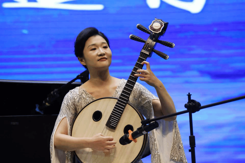 2012级声乐表演方向本科生、2016级音乐表演方向研究生、2022级韩国岭南大学博士研究生张继超声乐演绎《来香巴拉看太阳》《爱永在》,向观众传递爱与希望。2011级音乐表演方向本科生、2015级音乐表演方向研究生、音诗雨轩艺术工作室主理人黄艳柳琴弹奏《梧桐雨》,为我们编织静谧浪漫氛围。