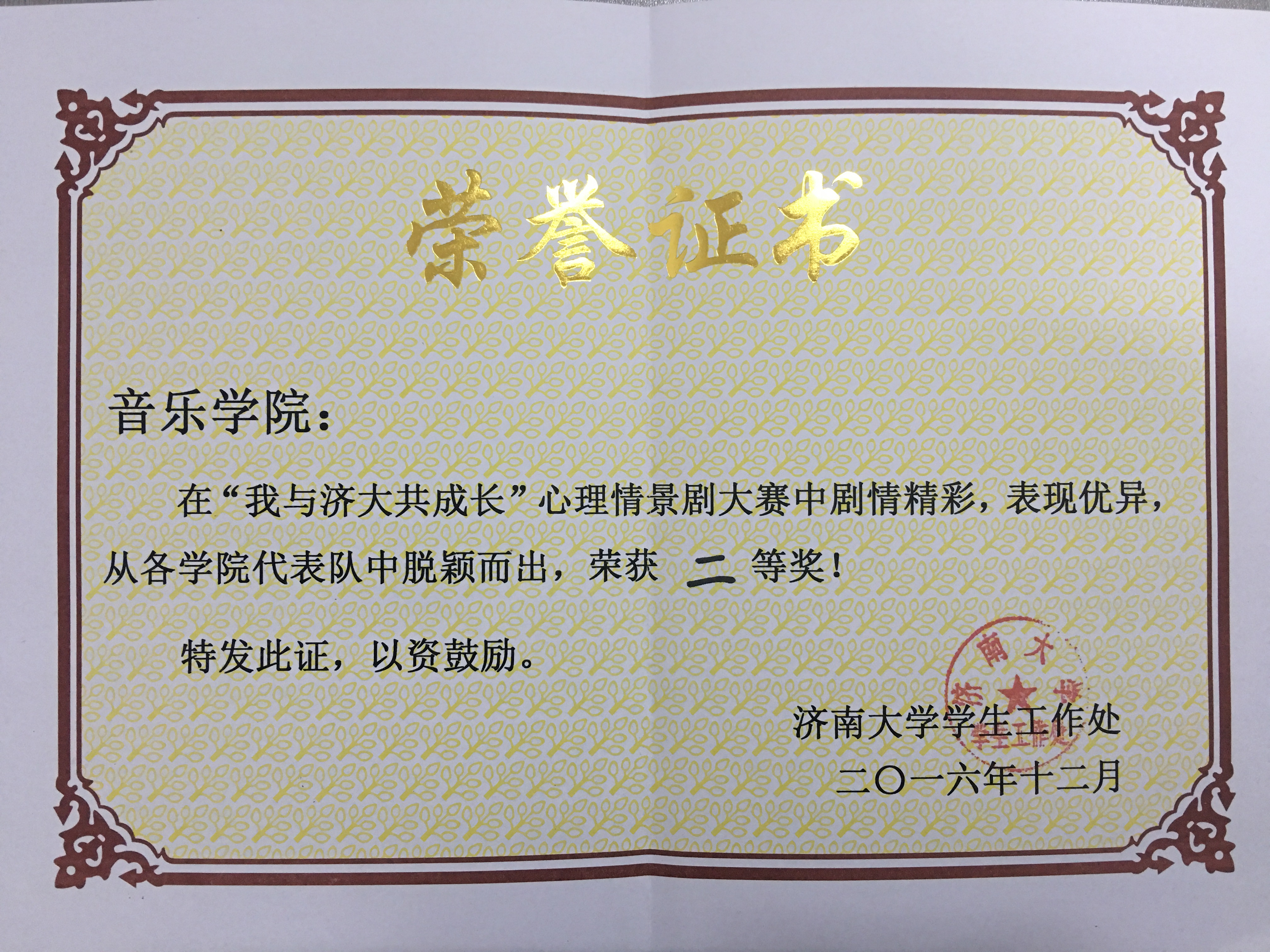 2016年12月4号,由心理指导中心主办,大学生心理发展服务中心承办的“我和我的济大”心理情景剧大赛复赛在第二学术报告厅举行,304.cam永利集团取得了全校第二名的好成绩。