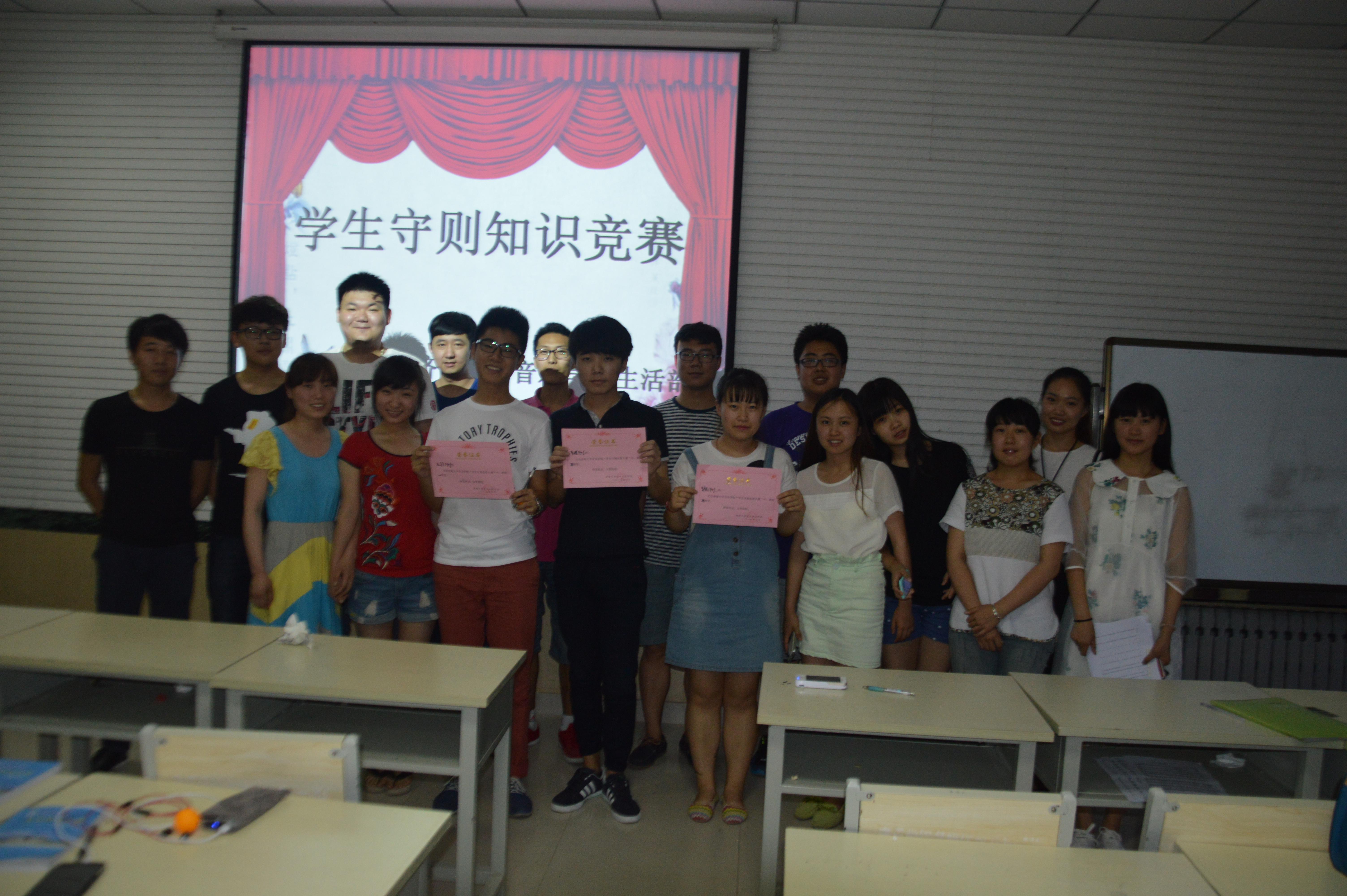 为了让同学们在学习和生活中更加规范自己的行为,养成良好的文明道德习惯,5月29日晚,304.cam永利集团学生会在多媒体三教室举办了第一届学生守则知识竞赛,2014级各班代表参加了此次竞赛。