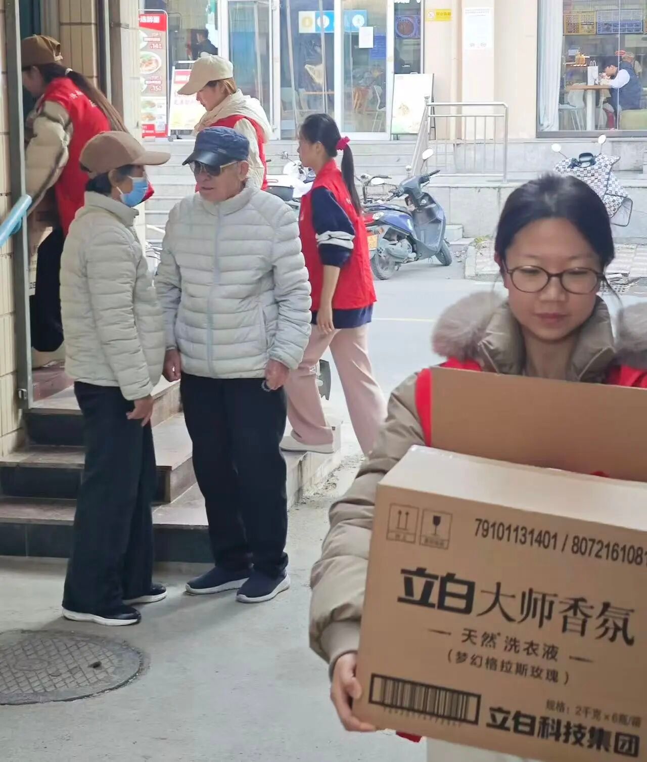 比赛期间,志愿者们坚守岗位,形成“分段守护、全程响应”的服务模式,做好排头兵、当好守护人。另一部分志愿者同时准备完赛奖品发放工作,将全校一千余名离退休教师的活动奖品摆放整齐,分类发放。